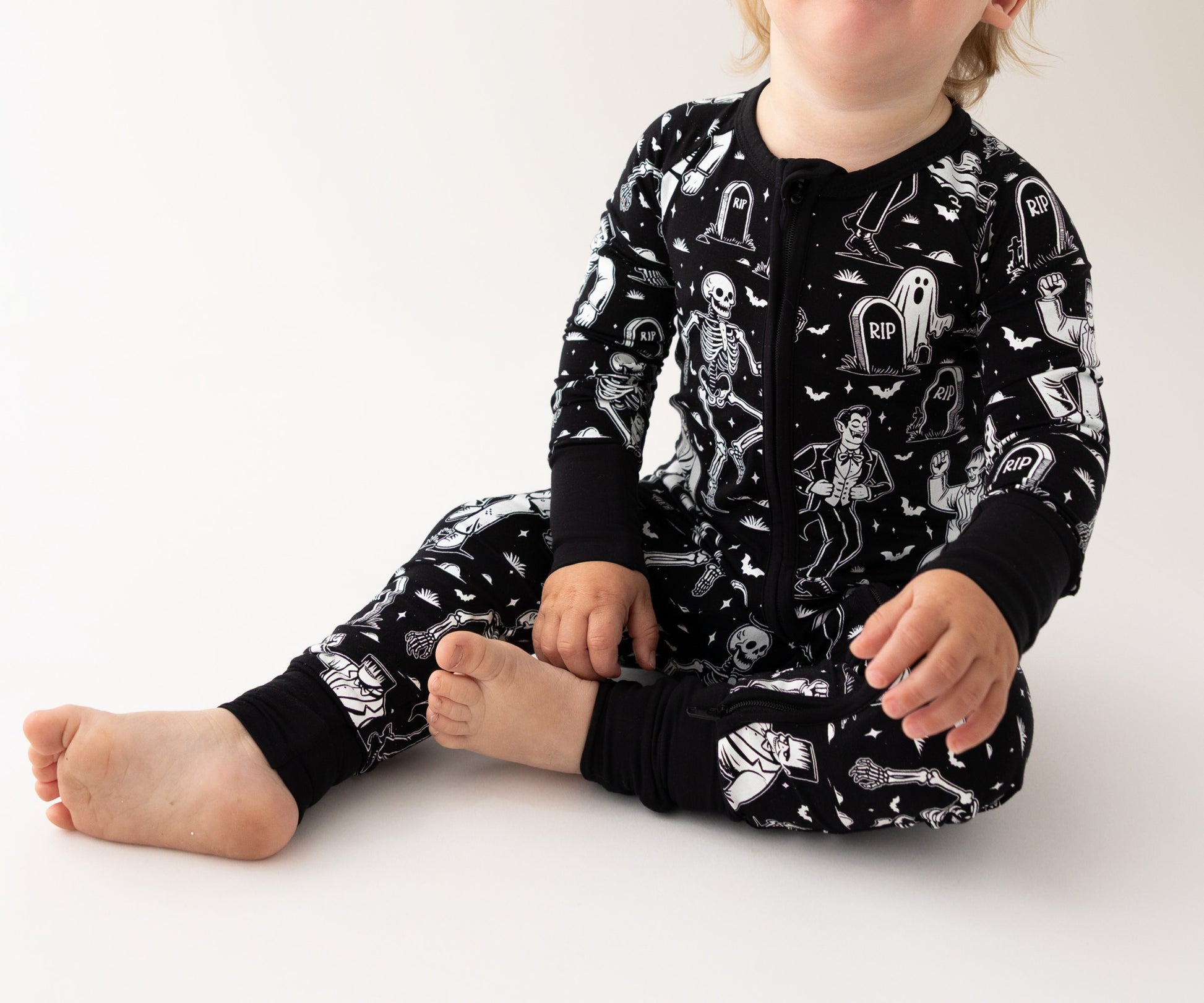 Part romper, part footie, and 100% a Halloween must-have. Our limited-edition Halloween Zippies are the perfect mix of spooky cute and unbelievably soft. Made from 95% Lenzing Modal and 5% Spandex, this fabric is buttery smooth, breathable, and perfect for sensitive skin.